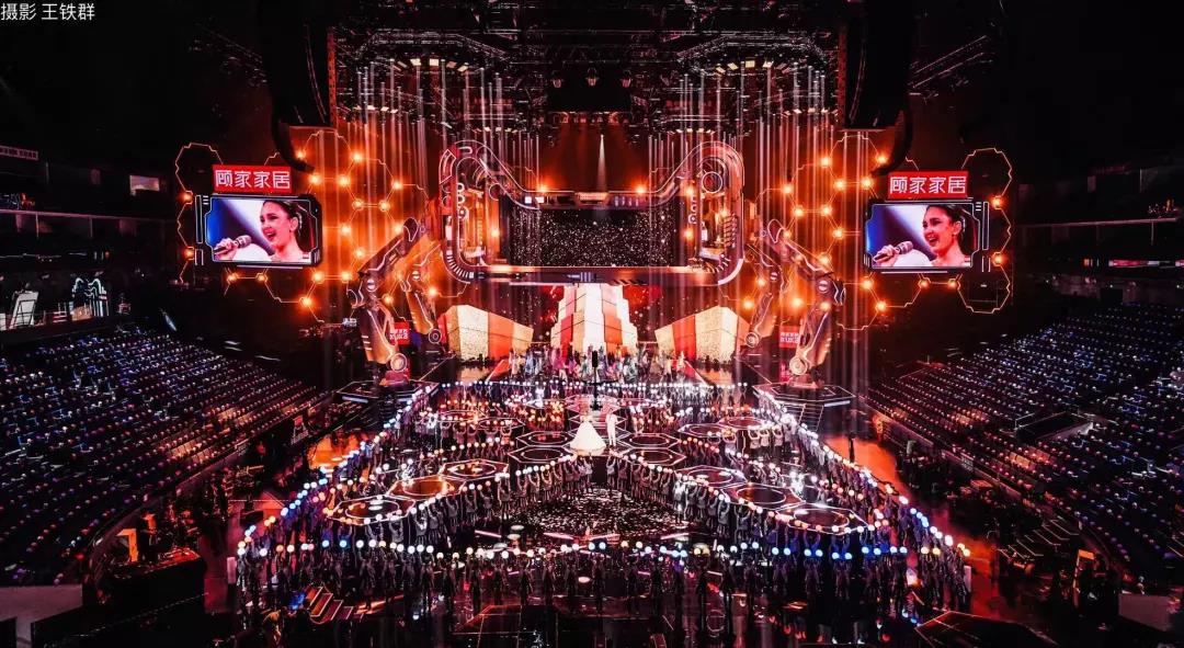 整个舞台跨度非常大,灯光需要在前期就与导演组沟通确定艺人表演的位置,来进行分区域编程,否则如果艺人在主舞台表演,而大量的cue却在地屏舞台时,会导致灯光在镜头前穿光,拍摄人物时候会造成不清晰的画面。