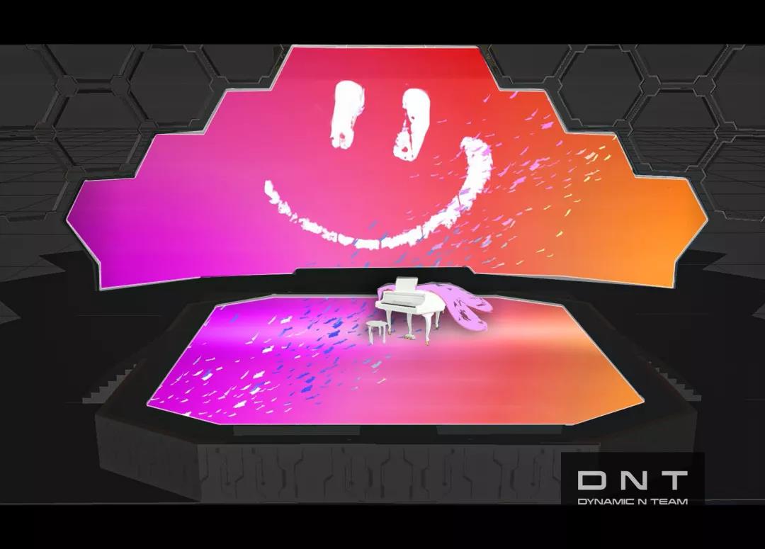 Taylor Swift带来《Me!》《Lover》《You Need To Calm Down》三首歌,DNT团队为表演提供编排和视觉整体创意设计,借助现场舞美结构、成像结构和威亚技术,带来多维立体空间呈现。《Me!》舞台视觉以六边形作为主结构造型,设计六边形视觉元素及道具雨伞,跟现场的舞美结构相呼应,并撷取色彩元素,形成色彩缤纷的多维空间。歌词把立屏和地屏联动,形成流动感。